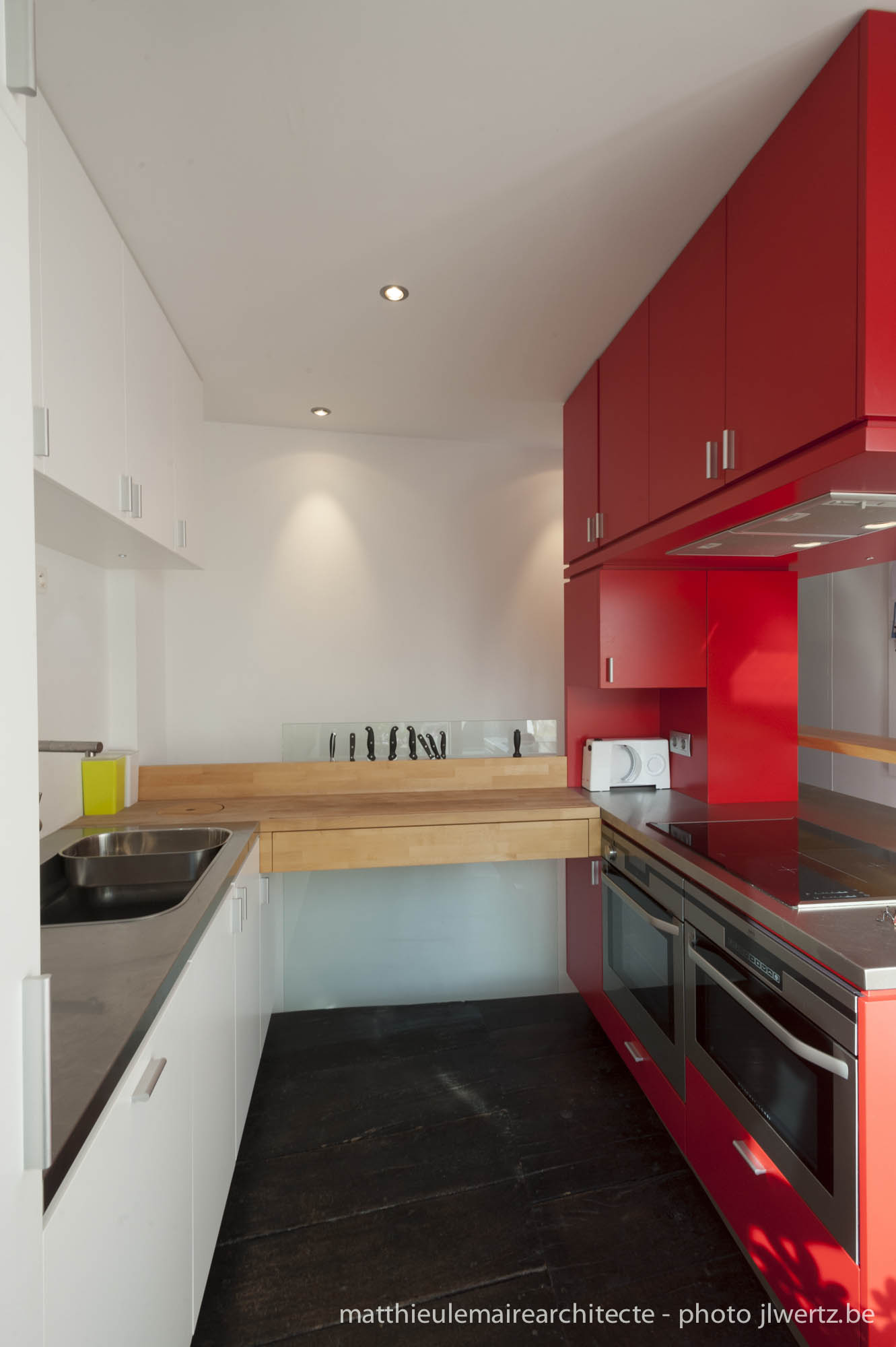 Les aménagements contemporains ont été imaginés en contraste avec les éléments anciens en chêne.